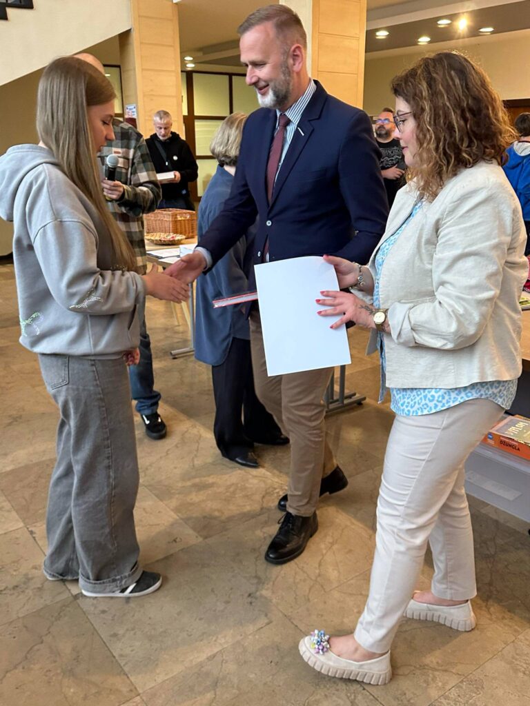14 maja 2025Nasza mała ojczyzna – Oświęcim – jest miejscem, o które powinniśmy dbać wszyscy. W związku z tym nasi młodzi ekolodzy brali udział w akcji sprzątania świata. Za ekologiczna postawę oraz konkurs z tym związany zostali nagrodzeni przez prezydenta Miasta Oświęcim. Bon na zakup sprzętu do szkoły oraz słodycze są miłym akcentem za ich zaangażowanie.
