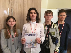 Uczniowie naszej szkoły wzięli udział w międzyszkolnych zawodach szachowych w MDK w Oświęcimiu. Drużyna młodzieżowa ( klasy 7 i 8) w składzie: Filip Bury,Kacper Łucka, Dariusz Korczyk, Oliwia Wieczorek zajęła II miejsce. Drużyna młodsza w składzie: Bartek Błasiak, Paweł Szkodny, Mateusz Wasil, Zuzanna Jurkiewicz zajęła III miejsce. Gratulujemy.